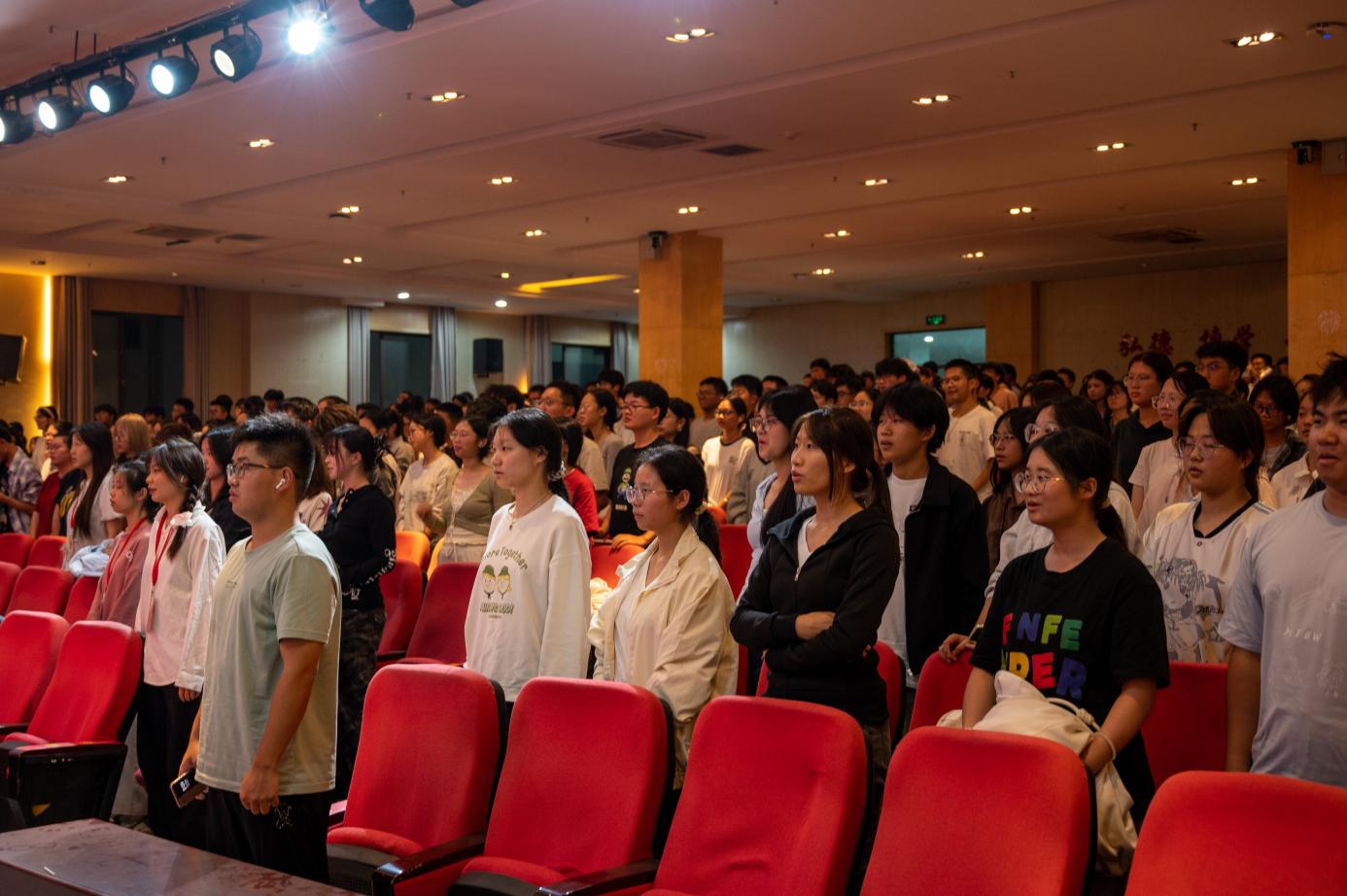 仪式在激昂的共青团团歌声中拉开帷幕,全体师生肃立齐唱,展现了湖科青年昂扬向上的精神风貌。开场宣传片《青春湖科》以生动的影像,全景式展现了学校的文化底蕴、发展活力与多彩的校园生活,激发了新生干事对大学生活的无限憧憬。