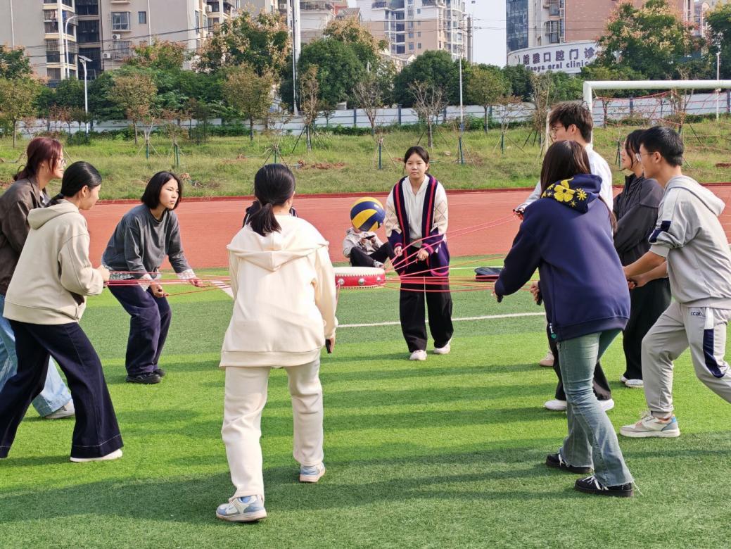 为深化学生团队协作意识,凝聚集体向心力,10月25日8:30,以“凝聚、协作、成长”为主题的素质拓展活动在湖北科技学院东区运动场顺利开展。“齐心协力摆造型”项目考验学员们的快速记忆与有效沟通,用身体灵活组合成指定造型;“超级接力赛”项目融合三人四足跑、跳绳与拼图,小组间的流畅交接传递着信任与支持;“声波传声筒”通过肢体语言的信息传递,锻炼学员们表达与理解的双向能力;“同心鼓”项目中,全员专注操控系绳让排球连续弹跳,将协作精神推向高潮;“桃花朵朵开”集体游戏,让友谊在拥抱与欢笑中升温。从拘谨生疏到全情投入,学员们在一次次协作中深化友谊、凝聚力量,生动诠释了团队精神的深刻内涵。