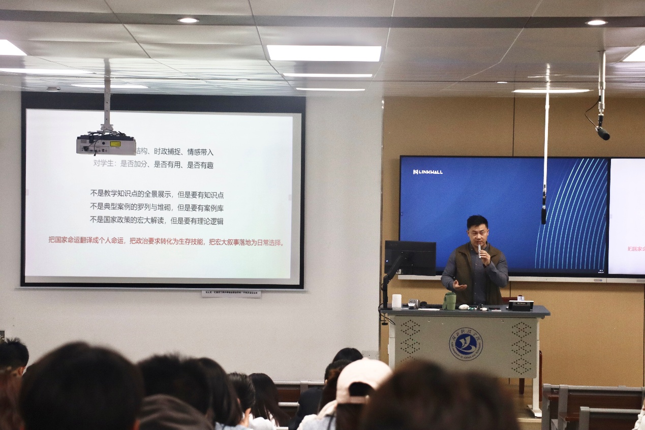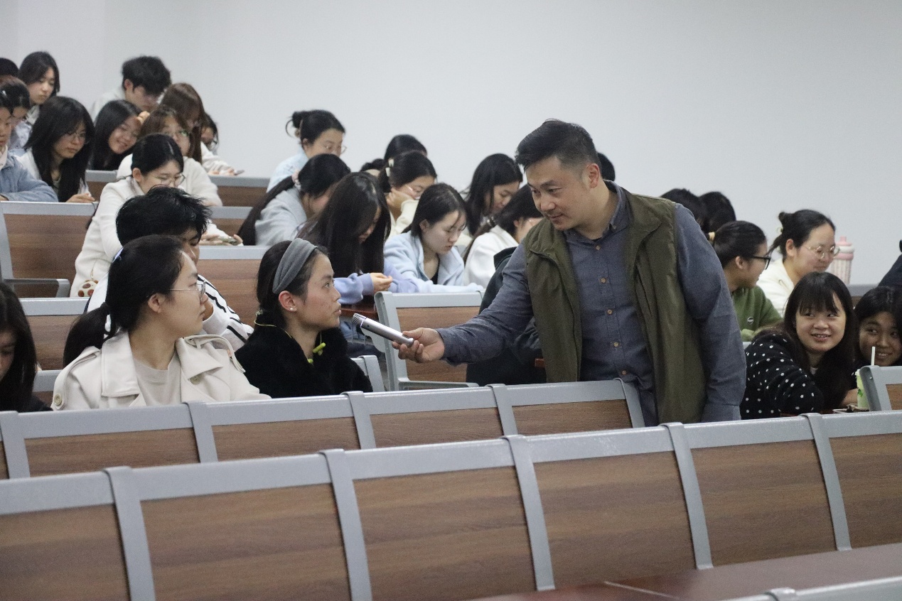 宣讲结束后,互动交流环节将现场氛围推向高潮。同学们结合自身学习生活实际踊跃提问,从“如何辨别网络上的不良信息”“日常使用APP时如何保护个人信息”到“校园生活中如何防范渗透风险”,问题既贴合校园实际,又兼具思考深度。面对同学们的疑问,丁威老师耐心细致地逐一解答,结合自身教学经验与学术研究成果,给出切实可行的防护建议,鼓励同学们主动学习国家安全知识,将安全意识融入日常学习生活,树立正确的国家安全观,做国家安全的守护者、传播者。
