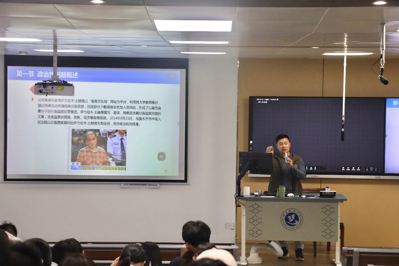 围绕政治安全、网络安全、校园安全、信息安全四大核心维度,丁威老师结合真实典型的校园案例,精准拆解了同学们身边的国家安全隐患。在讲解敌对势力渗透破坏的主要方式时,他重点剖析了“心战、策反”的危害,特别指出西方敌对势力借助网络优势,向青年群体传播不良信息、渲染恐怖暴力与色情淫秽等不良文化,通过“电脑海洛因”式的文化渗透,潜移默化地腐蚀青年思想,提醒同学们时刻保持警惕,筑牢思想防线。